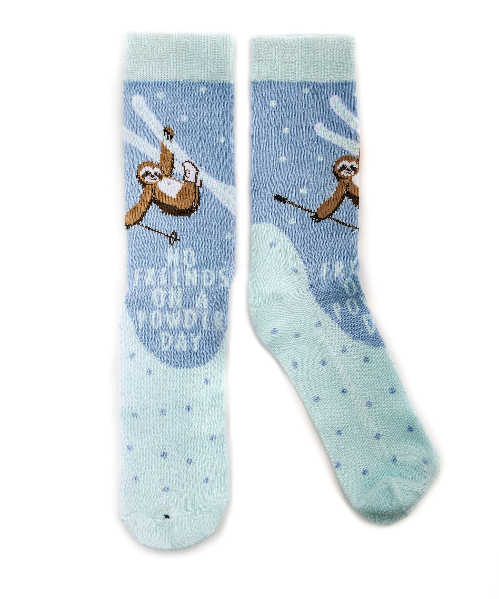 No Sloth Friends On A Powder Day Light Blue Socks